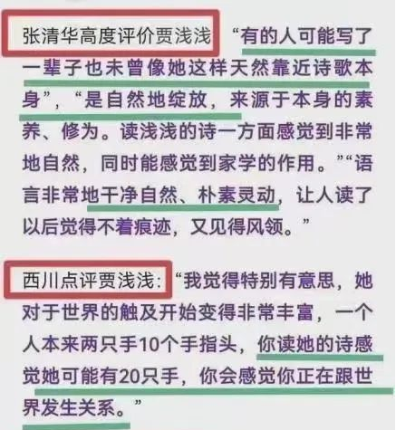 贾浅浅的诗就得到了不少“专业人士”的高度评价。