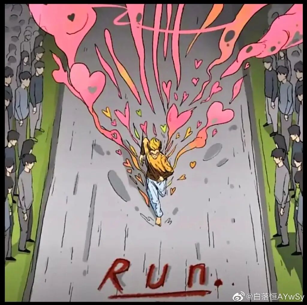 人们把他赤脚狂奔的场景艺术化,扬起的烟尘也变成了粉色;