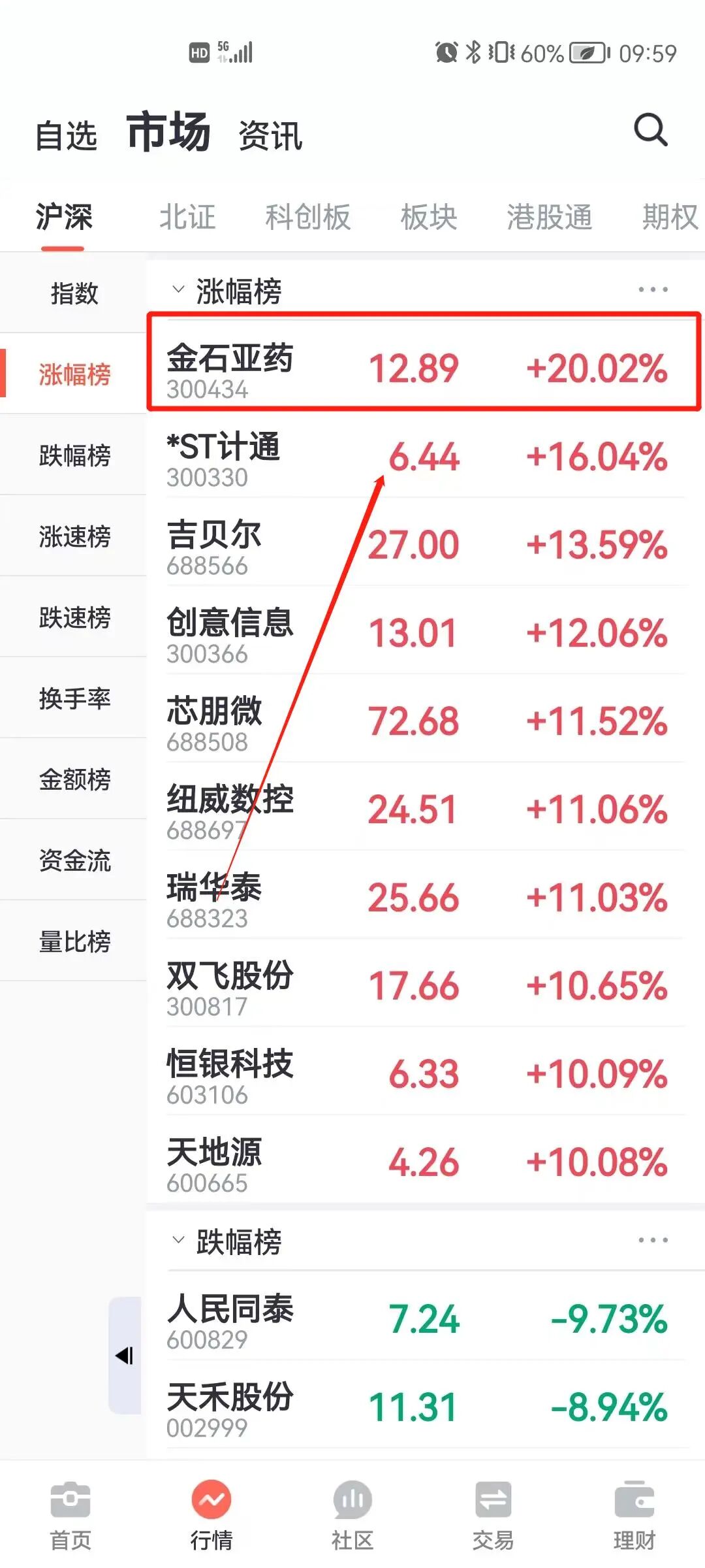 百宝湘APP路径:行情—创业板指