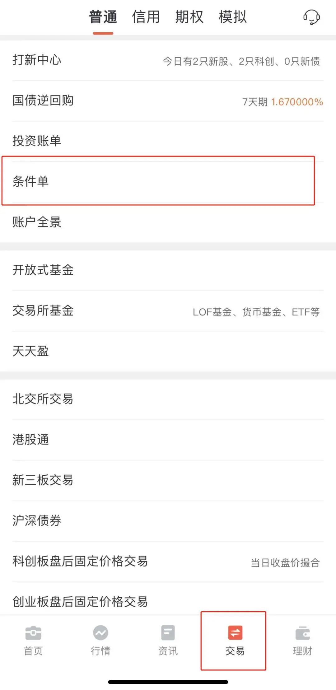 “涨跌停买卖”条件单设置路径