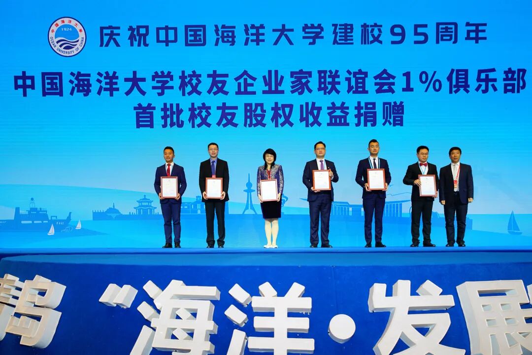 为校友企业家联谊会1%俱乐部成员颁发捐赠纪念证书