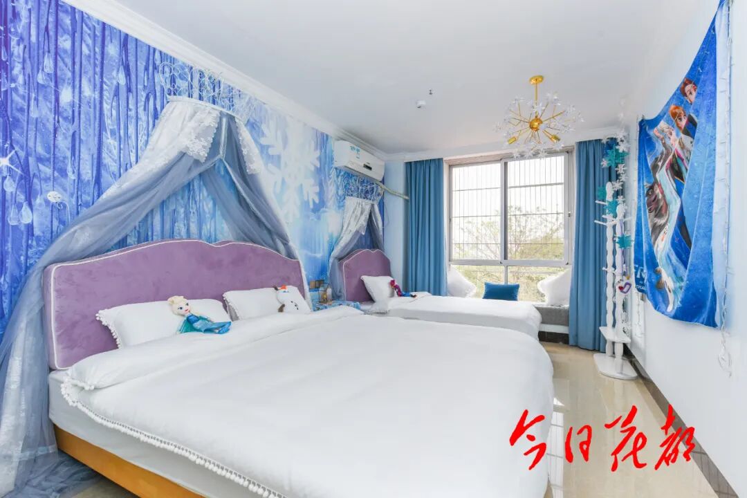 每间洞房色彩纯粹、设计简约;晚上打开顶上的灯带,身临梦幻缥缈之境。屋顶有天窗,足不出户,可以与大自然亲密相处,看天上云卷云舒。
