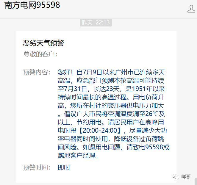 不少广州市民都收到了南方电网95598