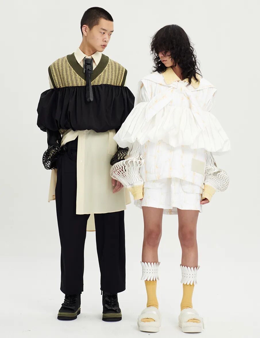 周师墨与Une Yea作为一对女性设计师搭档,都有着留学英国的经历。Une Yea毕业于英国皇家艺术学院配饰专业,她的设计充满了当代的先锋概念,其毕业设计作为当年毕业发布会中的压轴作品亮相,收获了众多好评。2014年,她还在巴黎“Who’s Next”大赛中获得“Best FashionItem”大奖。而周师墨毕业于伦敦时装学院女装设计本科及男装硕士专业,她通过具有严谨逻辑理念和丰富色彩肌理的设计语言,在求学期间便任职于Alexander McQueen、Erdem等著名时装品牌。