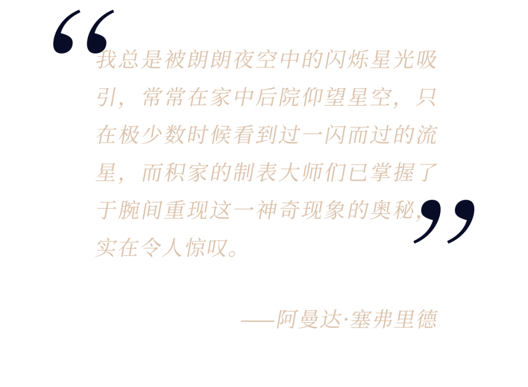 积家制表大师们,于腕间再现浩瀚宇宙的神奇魅力,凭借完全由大工坊自主设计与研发的全新机械装置,令璀璨流星随机出现于表盘之上。