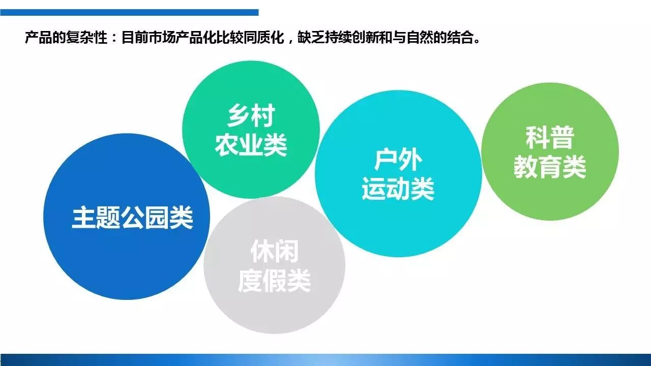 第三、这个产品的复杂性,本身度假村是一个非标产品,亲子游更是一个非标产品,它需要去量身定制,需要根据当地的特色来进行打造,我们目前看到产品市场还是比较单一,同质化的程度很强,缺乏创新、缺乏跟当地资源的结合。