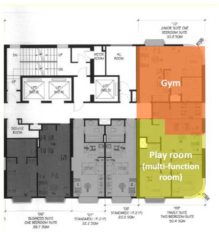 11楼:将健身房移至此楼。将现在的市场销售办公室改成健身房旁附加的多功能娱乐室。