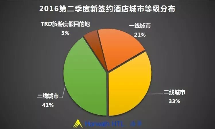 今年第二季度有41%的新签约酒店落户于三线城市,二线城市也占到了33%的份额,酒店投资的重点仍在二、三线城市。