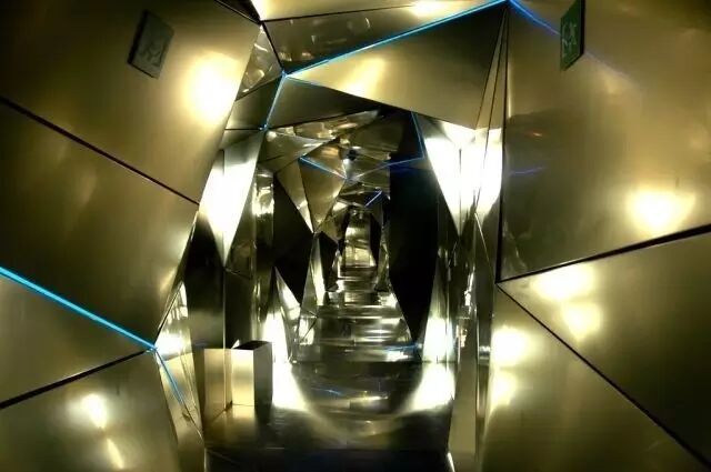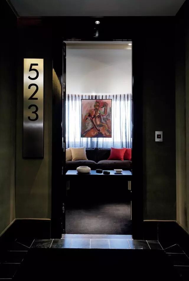 通体黑色的走廊传达出一种深邃与私密的感觉,客人仿佛走在一个时光隧道里,不知道自己正在去往历史的哪一个时间和地点。