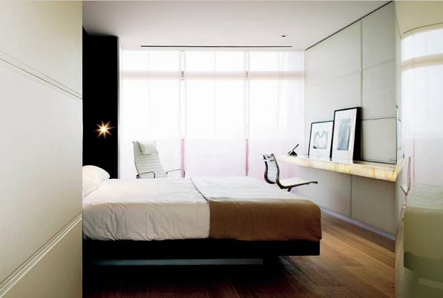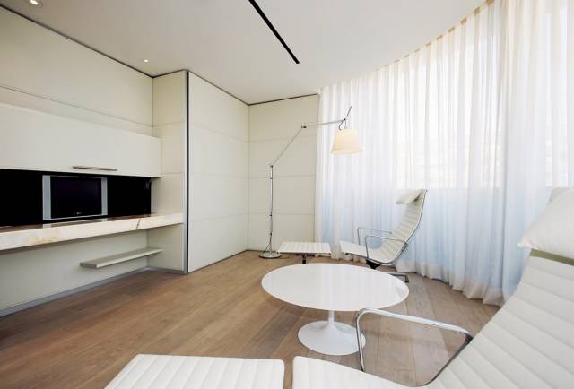“简单地解决问题而不是炫耀造型或复杂技术;含蓄克制,功能主义,持久耐用,力图在一个多功能、而非仅仅是卧室的居所创造视觉的角度。” 哈维尔·马里斯卡尔如是定义他为马德里美洲之门酒店11 层所做的设计。