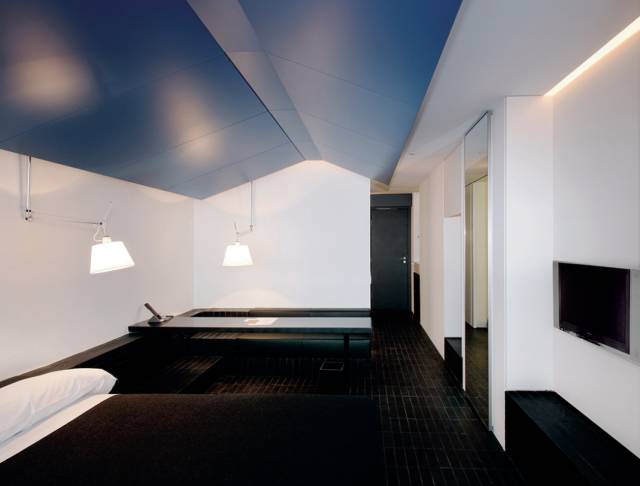 格鲁克曼的灵感取自“盒中之盒”,这个概念有助于对如此狭小的空间内的一系列行为的路径进行组织,最终目标是让入住酒店与居家体验相区别。