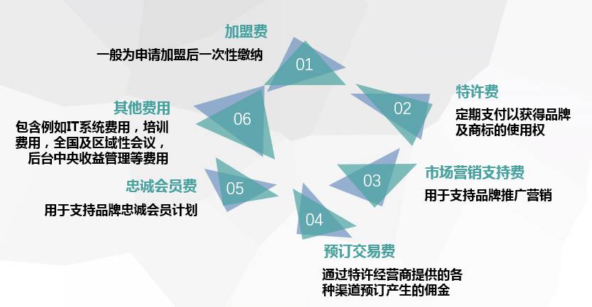 第五项忠诚会员费,也是管理合同中存在的费用,特许经营中会收取一定的比例。