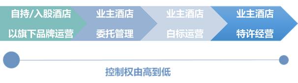 从业主角度而言,管理模式包括自行管理、委托管理和租赁三种方式。自行管理意味着业主自己拥有一个品牌(自有品牌)或特许经营。而管理委托意味着可以使用品牌委托的方式,也可以拥有自己的管理团队,实行白标运营。在这几种模式下,业主对物业的控制权是是逐项递减的。