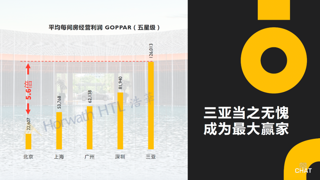 当聚焦除海南之外的远郊目的地酒店与近郊目的地酒店并进行对比时,坐拥得天独厚自然资源的远郊目的地,因受到鲜明的季节性、较弱的交通通达性,以及偶发的地区性疫情等影响,全年平均每间房收益不及五星级酒店的平均水平。就近郊目的地酒店而言,在「内循环」政策的带动下,因其靠近城市客源市场的地理位置,近郊度假目的地的获客能力相对更好,业绩表现更为稳定。