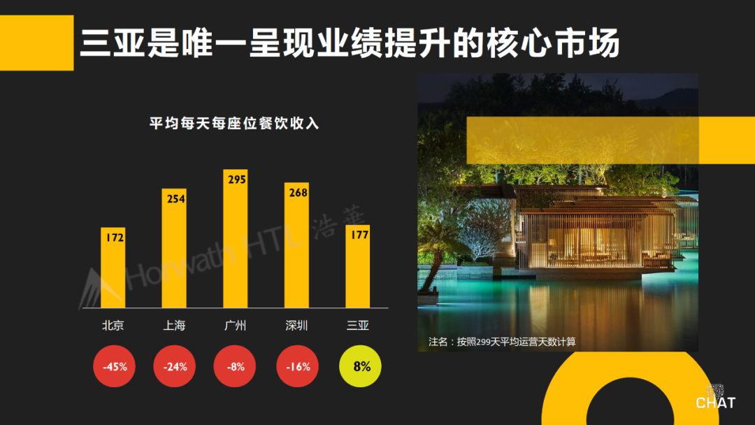 三亚五星级酒店餐饮业绩与2019年变化率