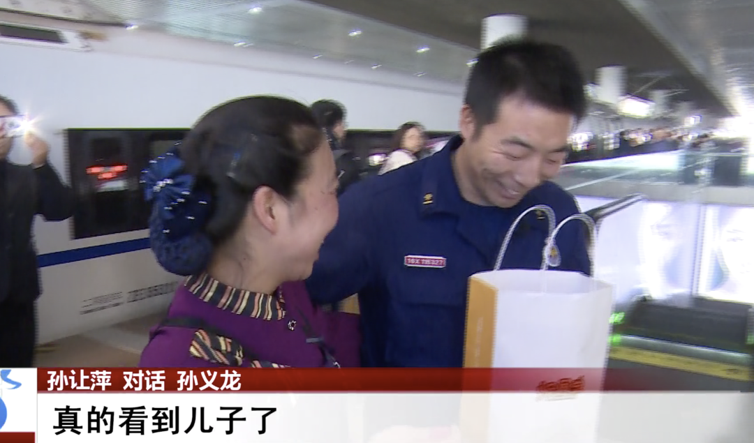 还记得几天之后,南京消防那名叫孙义龙的消防员在高铁站台上和妈妈相聚的“180秒”吗?