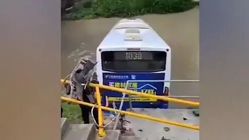 一公交车冲入河道