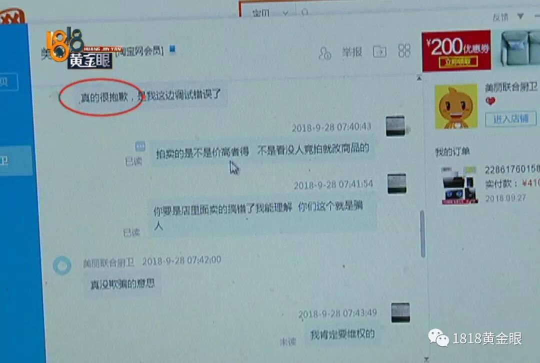 美丽联合厨卫淘宝店 店主:“就因为我们不懂啊,第一,我们刚刚把商品转了拍卖,就不懂,我们也第一时间跟他解释了,他也申请退款了。”