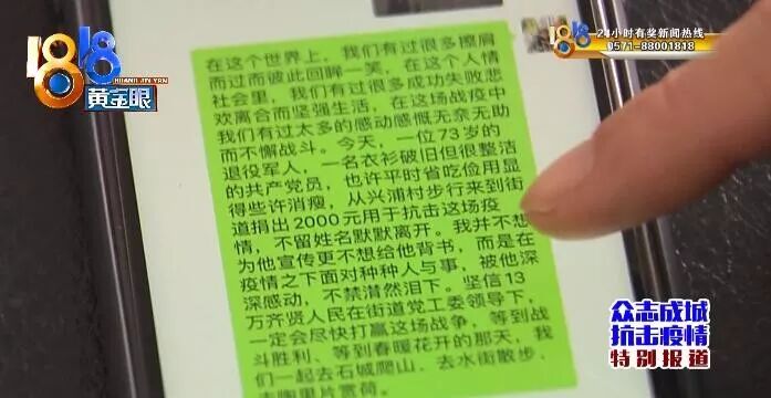 当时方国权正在捐助物资仓库清点物资,老人在工作人员的陪同下找了过来,从口袋中拿出崭新的2000元现金委托他捐赠出去,用于抗击疫情。