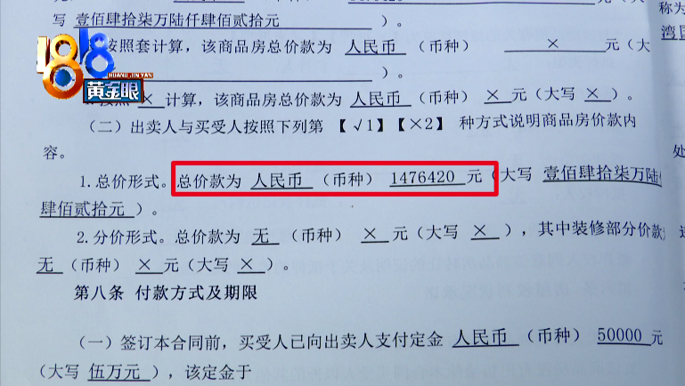 这位工作人员的手机里有一份定金合同的照片,显示何女士购买的这套房子,原始销售价格是1702082元。合同上有何女士丈夫的签名和手印。