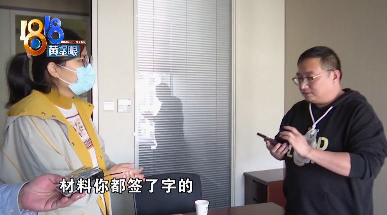 找到了中介公司,但对方不让进门,何女士急得差点当场报警,这时候另一位工作人员主动出面,把何女士和记者请进了办公室,还拿出了相关材料。