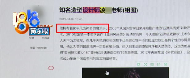 文章介绍说,这位发型师在韩国学习过,还写过一些关于造型设计的书,是中国十大首席造型师、中国化妆艺术研创中心专家、中国最具商业价值造型师、瑞士日内瓦湖区专家大使,文章里还这样描述:“他有着化平凡为神奇的魔术手”。