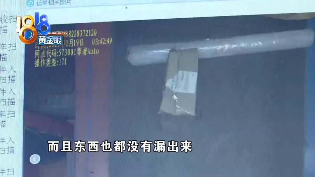 洪合分部调出了当时的监控,显示小李的包裹送到洪合分部时,纸箱一侧就有破损,是用透明胶封住的。