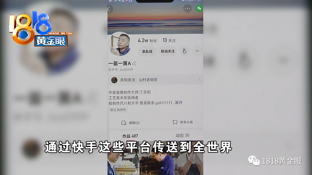 杭州余杭中泰竹笛制作技艺传承人 丁志刚:“网友把做好的笛子再寄给我,我在网上上课的时候进行现场点评,我们中泰的竹笛制作技艺通过快手这些平台传送到全世界。包括我今年带的两个徒弟,都是通过这种平台来找到我学习竹笛制作技艺。”