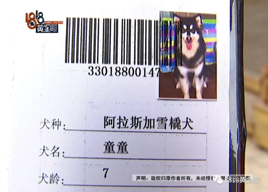 小沈养了一只阿拉斯加犬,相关证件齐全。