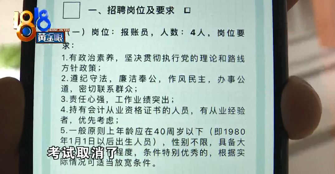 祝先生:“那天端午我们全家人在吃饭,她说因为报考人数不足,考试取消了,他们又在公众号上说,考试正常举行,那我们作为应聘人员,觉得不公平。”