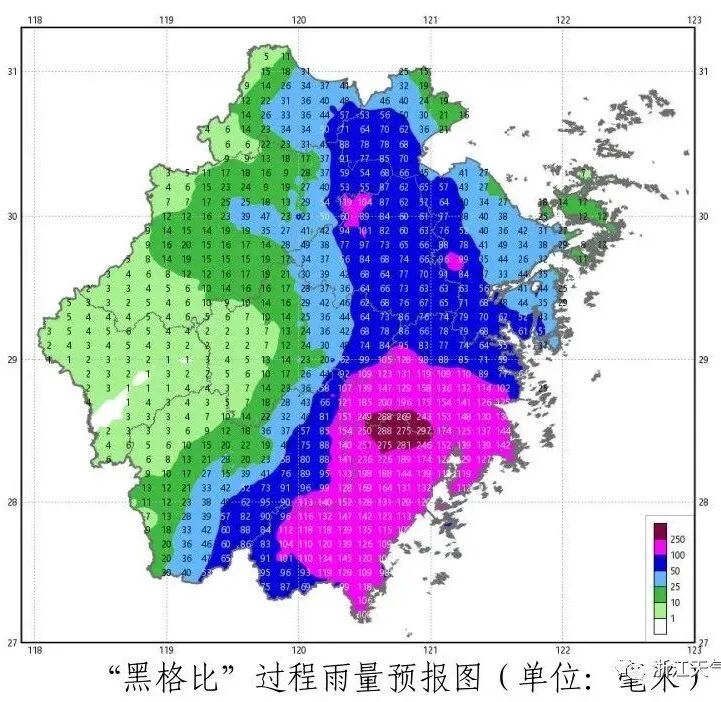 预计3日20时至4日20时累计雨量温州、台州、丽水东部等地50~80毫米,部分100~150毫米,局部 250毫米以上;另外,浙北东部累计雨量30~50毫米,部分50~80毫米,局部100毫米以上。