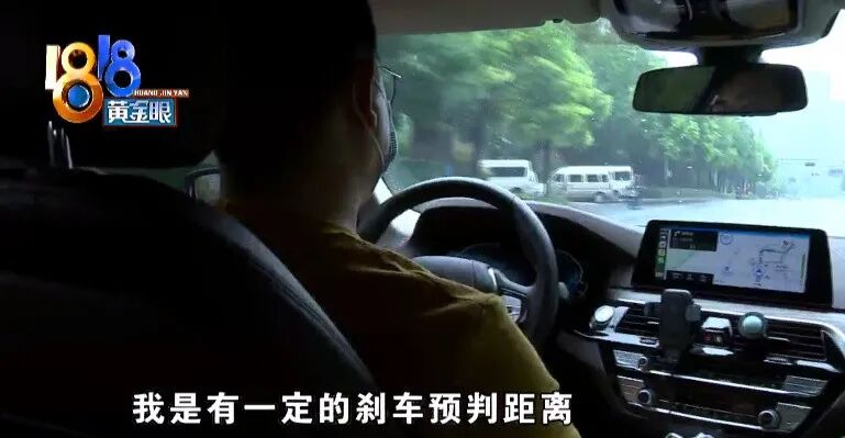 宝马车主 刘先生:“这脚(刹车)又是软的,这脚很软,你看我的脚,我的脚快(踩)到底了(刚才那下软掉了)对,这下又硬回来了。”