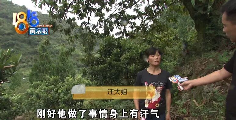 汪大姐:“我父亲早上是这样说的,我去看下马蜂窝摘掉没有,要是摘掉我顺便捡几个板栗,刚好他做了事情身上有汗气,走到那里就飞过去咬他了。”