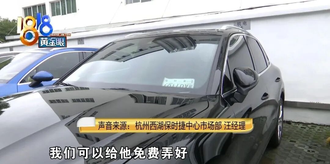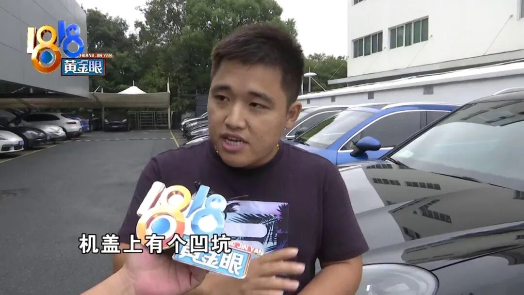 杭州西湖保时捷中心市场部 汪经理:“这个事情是原来提车的时候,刚好双方也没有检查出来,这辆车子后来提车回去之后, 客户发现了这个问题。(记者:就是你们承认,这个凹坑确实是提车之前就存在的)对的。(现在有没有查清原因)这种可能性有很多,因为车辆从德国那边出厂,一路运过来,通过海运到海关,然后陆上的陆运,最后送达店里,中间会有很多的环节。”