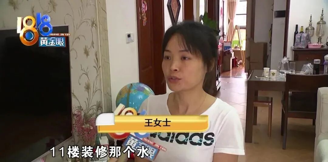 王女士:“对门姐姐跟我们讲,11楼装修那个水,已经从他们的门口漏到过道了,然后你家肯定很多水,结果我们门打开一看,所有家里,阳台滴水,卫生间、柜子,包括厨房,全部在滴水。”