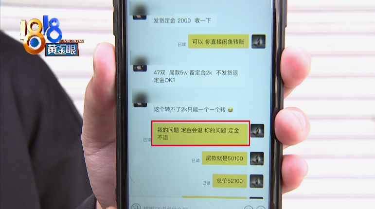 小陆说,他把对方已经支付的50100块钱退了回去,但两千块钱定金扣下了,后来,对方就在闲鱼平台上投诉了小陆,说小陆收了钱不发货。