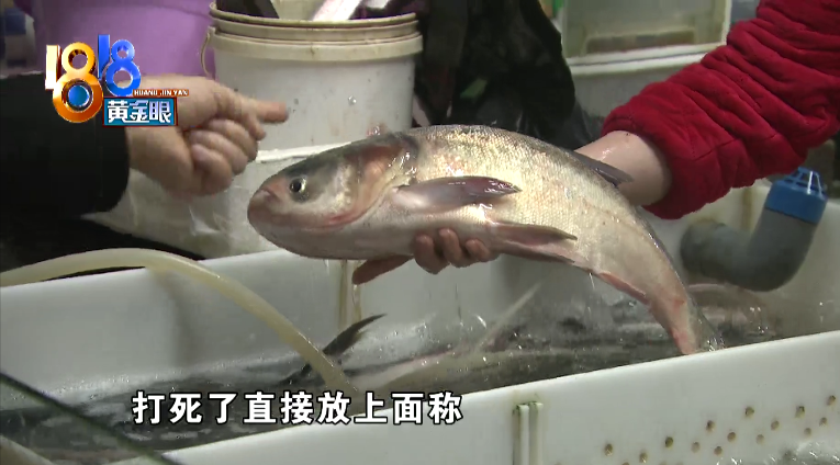 水产摊位摊主 王大姐:“它的鱼都那么大,假如我们直接放在小秤上,蹦蹦要跳,跳的话,秤都被跳坏了,还有看不清是多少钱。我们就确定,你确定要吗,好,就这两条,我们就打死,打死了直接放上面称。”