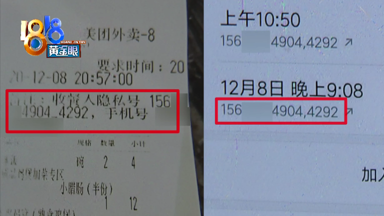 查店长说,当时以为那名男性是朱女士的家人,也没多想。而关于这次通话,美团工作人员给查店长发来一张截图,图片中的主叫号码是门店的工作号,时间是12月8号晚上9点11分,上面也有个虚拟号码,跟朱女士订单上的号码相比较,前面的号码一致,但转接号码的最后一位不同。