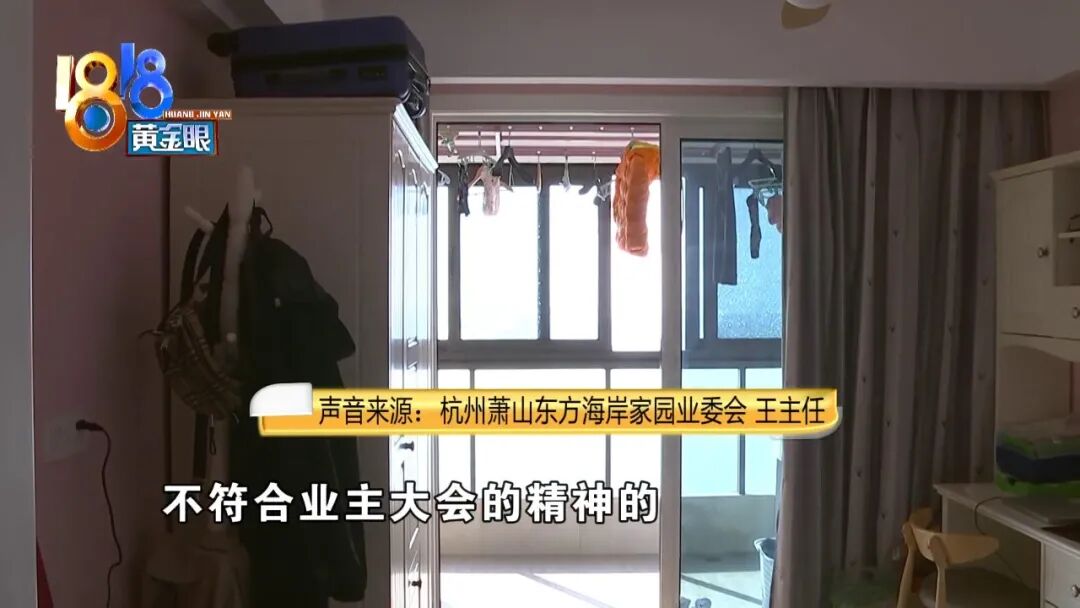 杭州萧山东方海岸家园业委会 王主任:“在去年业主大会上,已经通过了包阳台的决议,决议写得很清楚,就是在业委会的统一安排下,进行封包,如果私自封包,首先一个外立面的不统一可能会造成小区外立面整体环境的破坏。现在这几家,等于在我们的方案都还没有出来之前,自己就包上了,从这个行为上来讲,我们认为是不符合业主大会的精神的。”