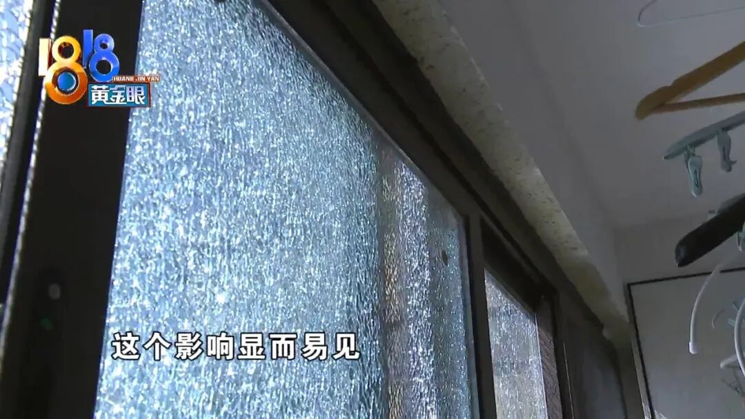 钱先生住在杭州萧山的东方海岸家园小区,房子在19楼,一家人已经入住一年多。现在阳台上的几扇窗户已经碎裂,角落里能看到小洞。
