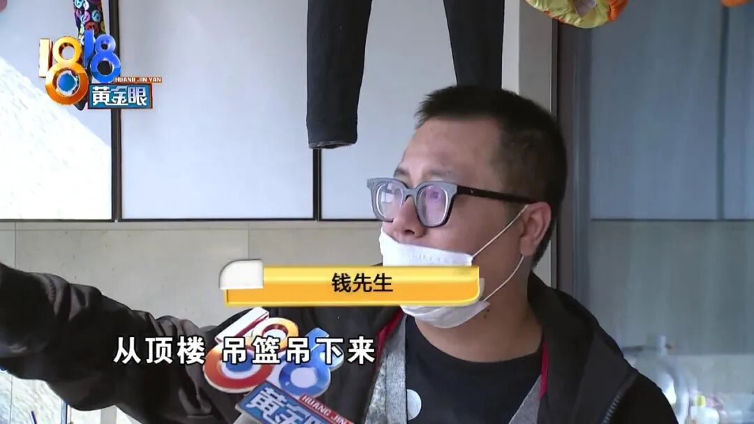 钱先生:“物业通过蜘蛛人的方式,从顶楼把吊篮吊下来,把我这个外墙的四张玻璃全部敲碎了,现在就是裂在那里。这个影响显而易见,现在这样我过年期间我也过不了了,现在所有的工人都放假了,玻璃也订不到了,这样敞在那里;第二个就是,我住在19楼,这个玻璃如果掉下去了,砸到下面的人,这个责任谁来承担。”