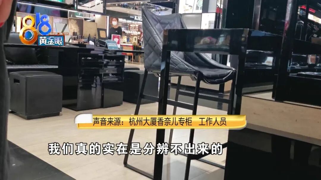 杭州大厦香奈儿专柜 工作人员:“我们真的实在是分辨不出来的,我们的货跟别人比的, 我们也没有去做过对比或者干嘛的。”