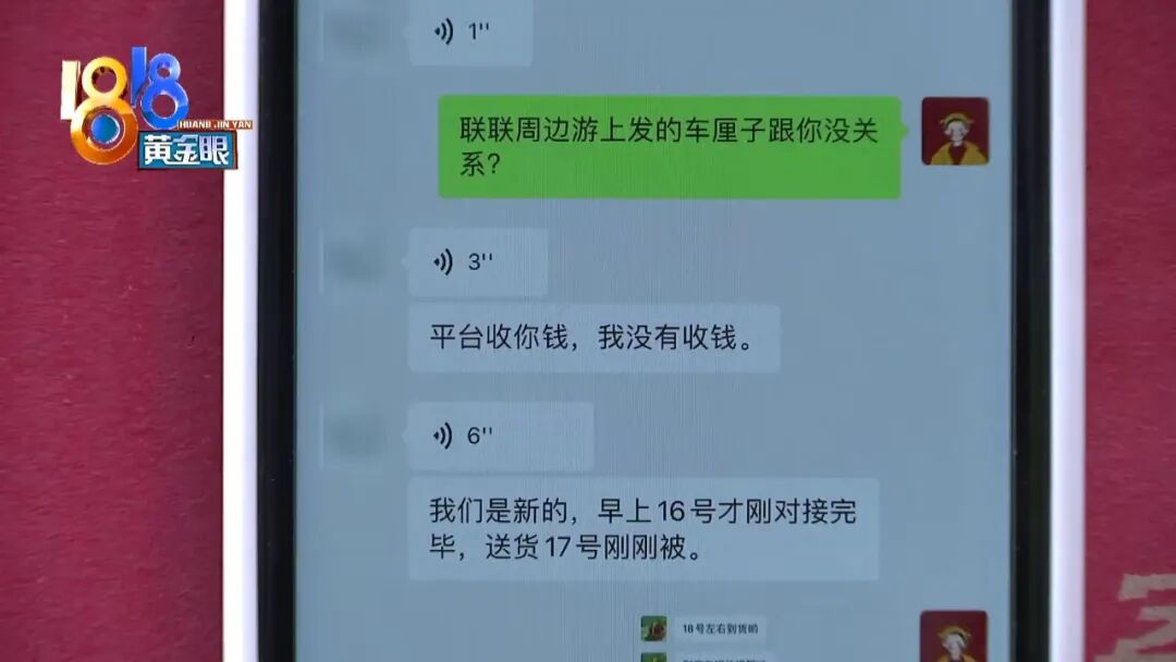 小钱:“他们是联联周边游找的第二个商家,然后来发货,联系他们的时候已经是20号了,那天上午的时候跟我说,是能够发货的。然后下午的时候,我问什么时候能够发货,他们又跟我说他们没有收到平台的货款。”