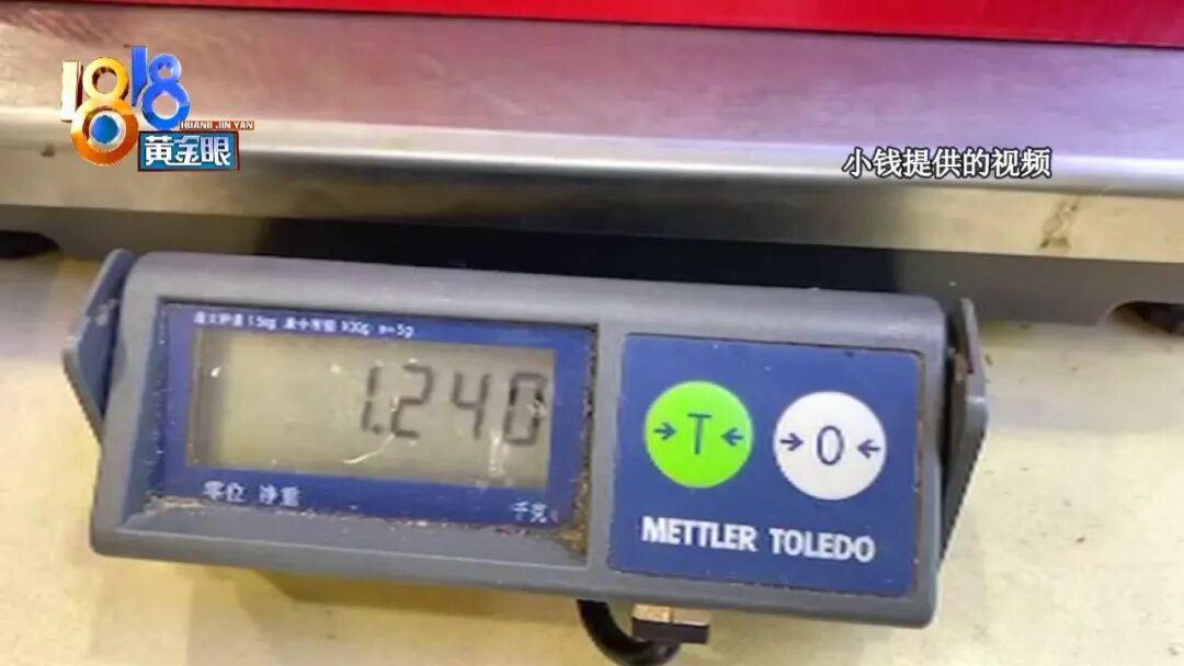 小钱:“加上外包装称的话,是三斤多,去掉外面的包装,带上里面那个包装称的话,是两斤四两。”