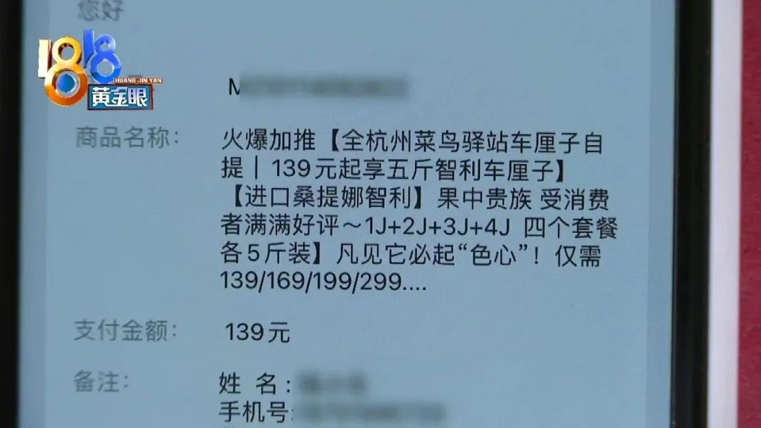 杭州的小钱反映,他通过一个微信公众号购买了五斤车厘子,实际收到的货只有两斤多。