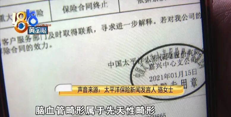 太平洋保险工作人员:“脑血管畸形属于先天性畸形,依据条款,左侧颞叶脑血管畸形,属于先天性畸形,属于责任免除范围,重大疾病不予赔付,但退还保单现金价值,客户1月11日在消保中心投诉,1月14日约了客户,到银保监嘉兴分局消保委进行协谈,我公司提出通融赔付,客户保额的百分之五十,即7万5的处理方案,但是客户不同意,我司建议客户走诉讼程序解决。”