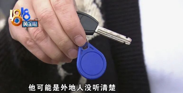马女士:“出门是需要这张门禁卡,老公拿着水桶想请保安开门,跟保安说门开一下,保安明确拒绝他了,我老公说了一句,不给我开我自己有钥匙,他可能是外地人,没听清楚我老公说什么。”
