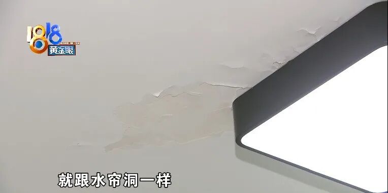 周女士:“去年主卧,睡觉的话,要用脸盆接着的,就跟水帘洞一样。然后客厅,这个地方,这是我看到明显的漏点,但另外的地方也还有的,因为墙体已经全部开裂了。”