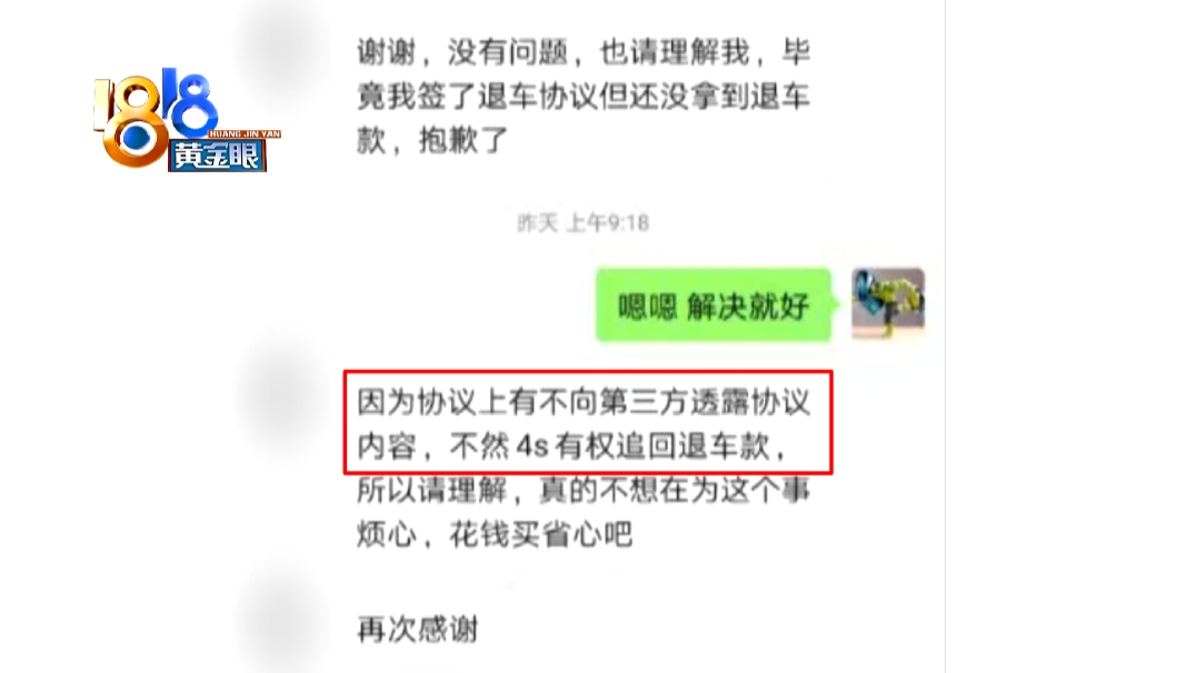 杨先生:“从群里面退出去,但是我始终觉得,这不太好,这都是一个个,个别的来对车主解决了,我希望的是什么呢?有一个总体的策略,大家都享受该什么样的政策,都在一起享受,每个人都去找这,找那,那不是把精力都投入进去,这厂家就没有诚意嘛。”