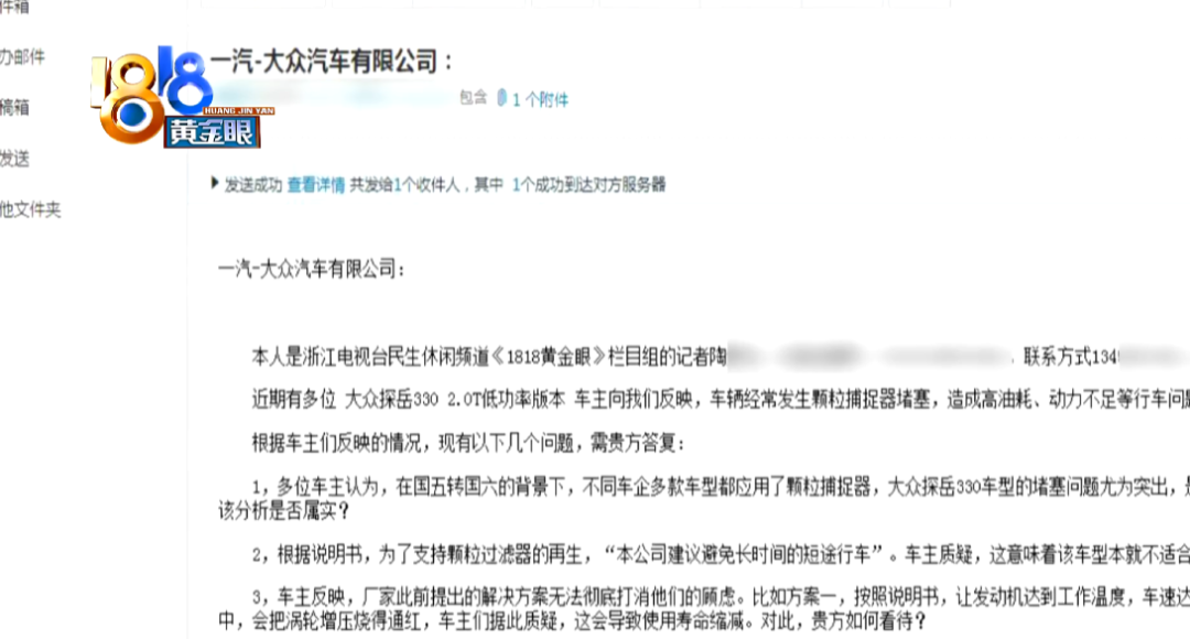 《1818黄金眼》一直在关注大众探岳330颗粒捕捉器的问题调查。在我们报道了省内外多位车主的遭遇后,又有一位杭州车主杨先生要说说自己的看法。他指出,这一问题的根源,还是出在发动机。